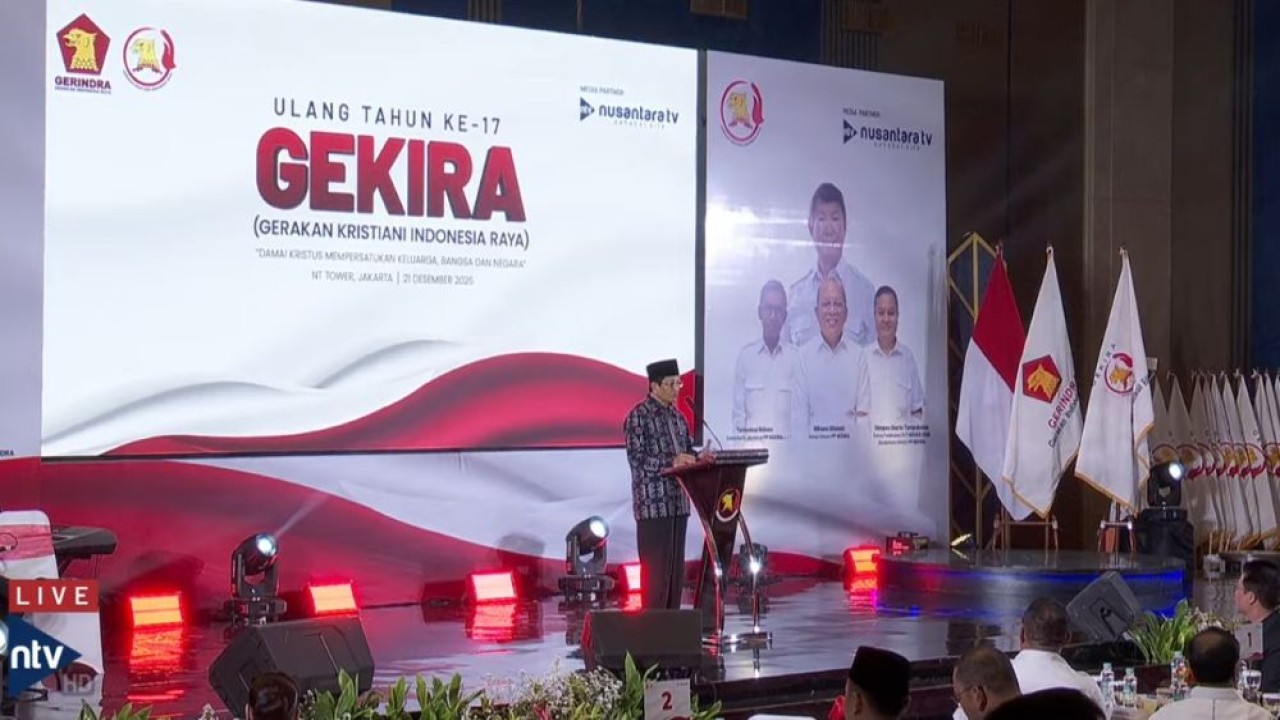 Hal tersebut disampaikannya Menag Nasaruddin saat memberikan sambutan dalam perayaan Hari Ulang Tahun (HUT) ke-17 Gerakan Kristiani Indonesia Raya (Gekira), Minggu, 21 Desember 2025, di Nusantara Ballroom NT Tower, Jakarta.